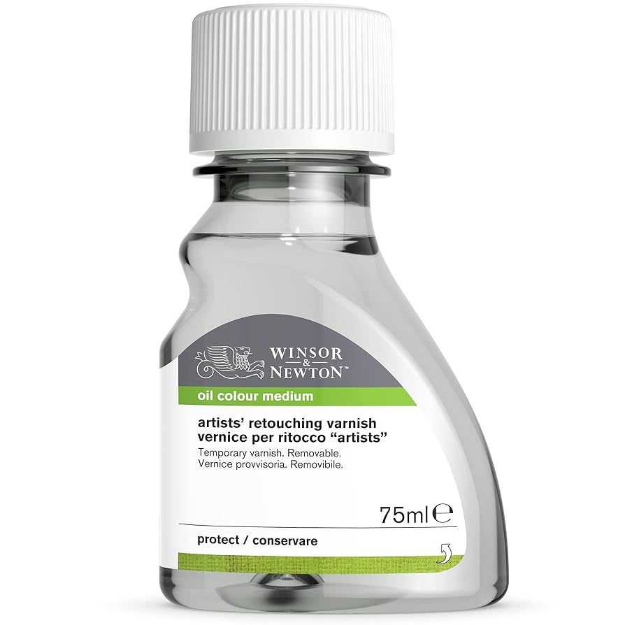 Used prior to an Artists’ or Dammar Varnish, this UV resistant gloss varnish gives temporary protection to recently completed oil paintings. It is quick drying, can be overpainted, balances out surface sheen and allows the paint film to cure through the varnish. Ensure painting is touch dry. Use thinly. Do not use as a medium.